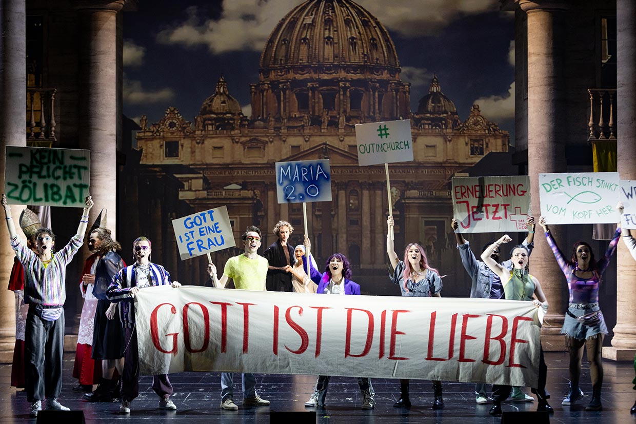 „Die Inszenierung macht schwer Eindruck mit ihrem Aufwand, ihrem Drive und ihrer klaren Botschaft, die Welt bunter, diverser, toleranter – kurzum: lebenswerter zu machen. (...) Big-Band-Sound und Rock-Oper reichen sich die Hände, absolut eingängig zum Mitwippen, Mitklatschen, Mitfiebern. Lukas Mayer in der Titelrolle und Til Ormeloh als Judas gelangen furiose Rollenportraits und stimmlich enorm kraftvolle Nummern.“