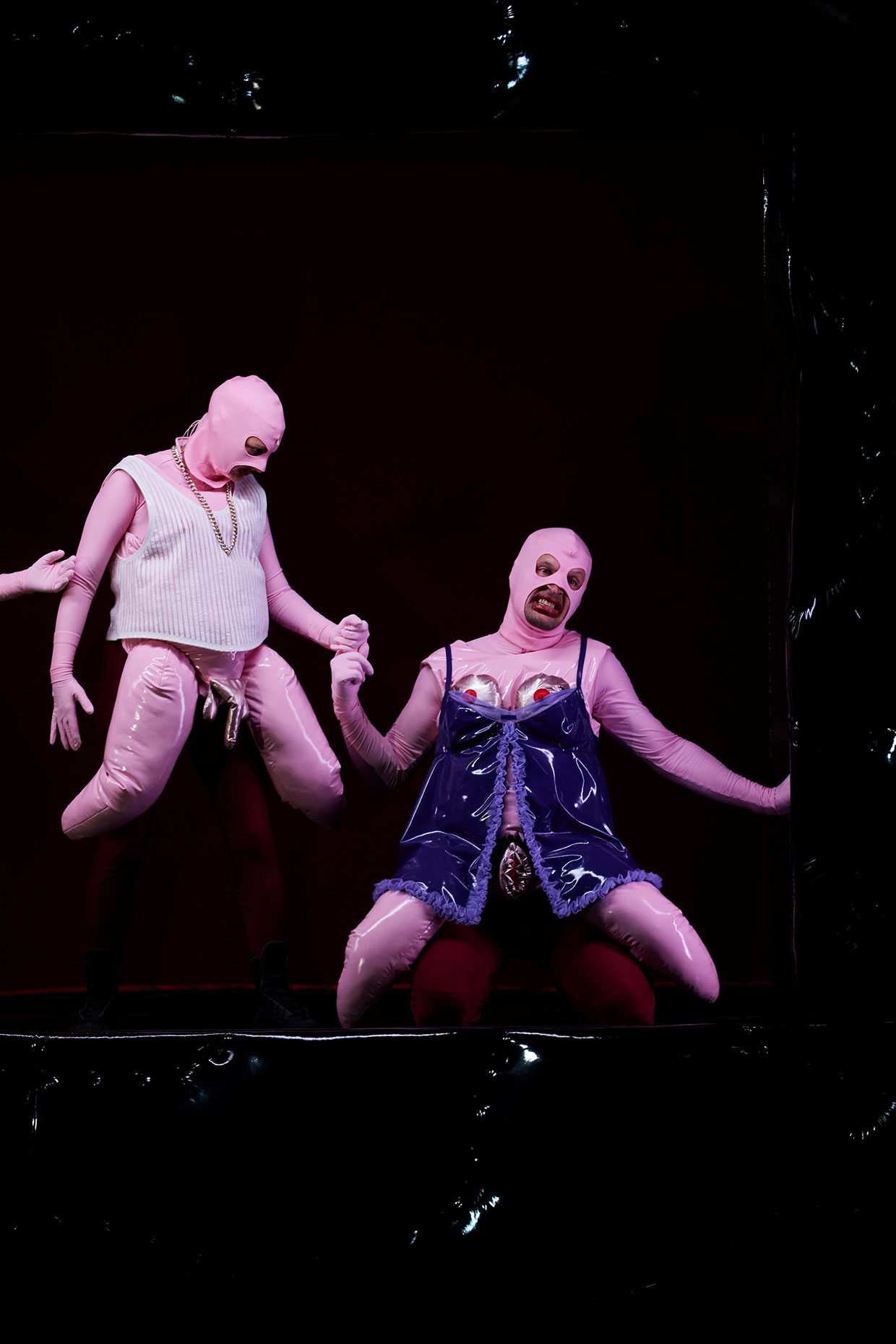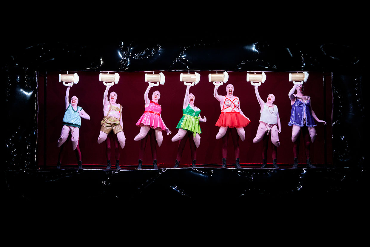 Rieke Süßkow, kürzlich von „Theater heute“ zur Nachwuchsregisseurin 2023 gekürt, inszeniert das Stück von Werner Schwab in einer abstrakten Ästhetik, die überhöht künstlich und zugleich sehr explizit ist.