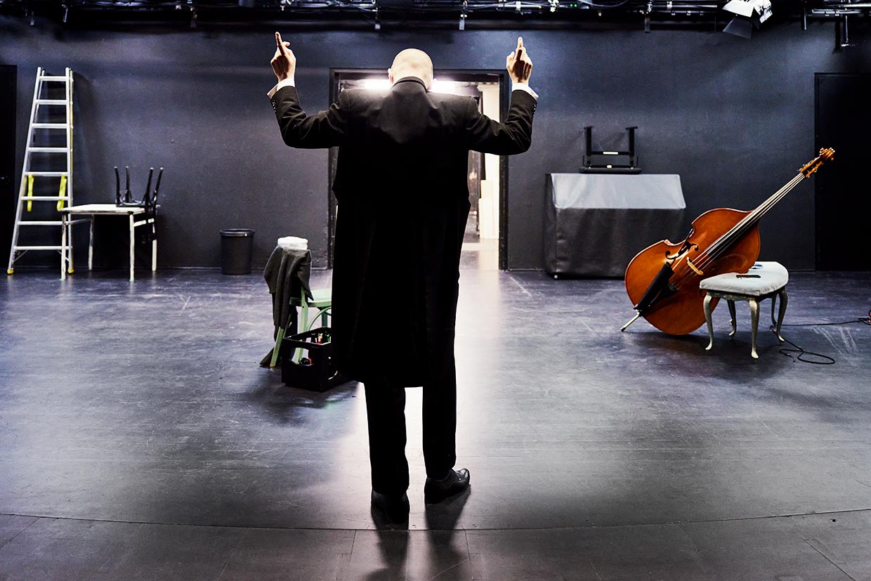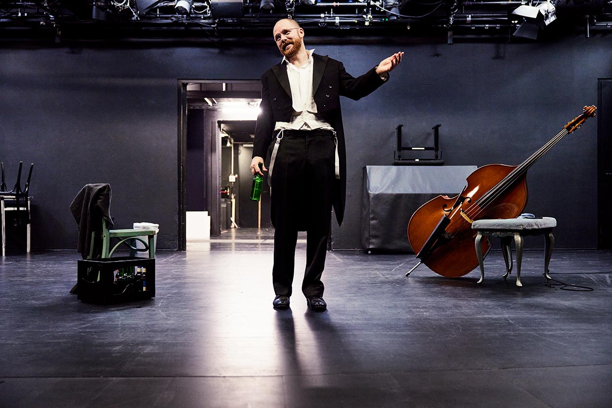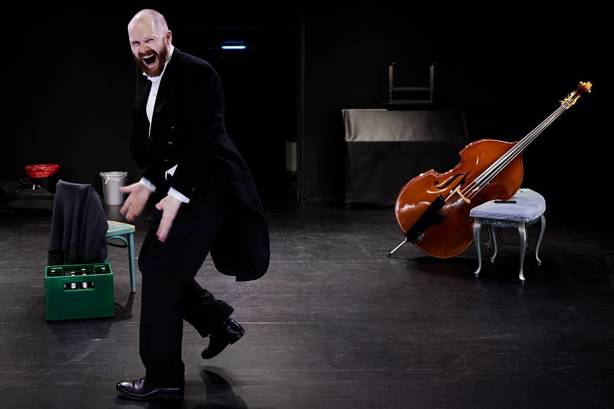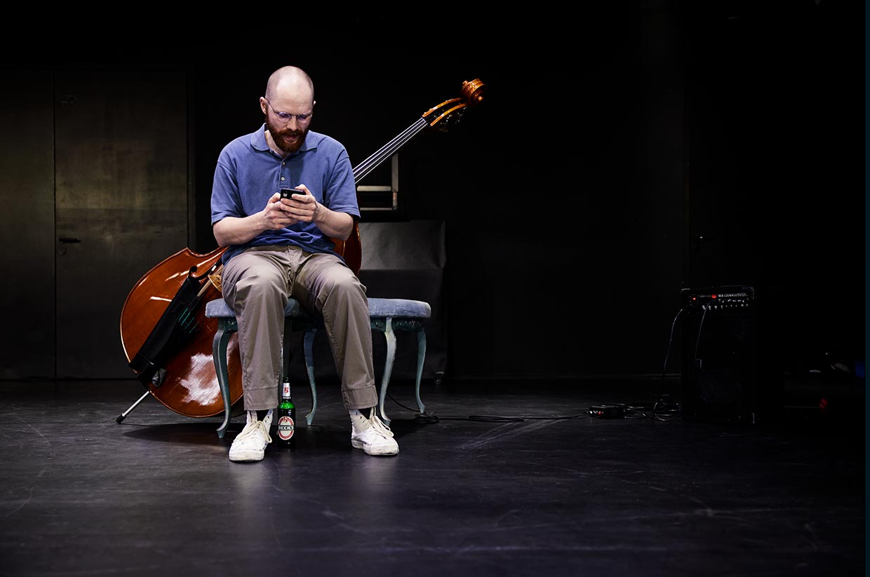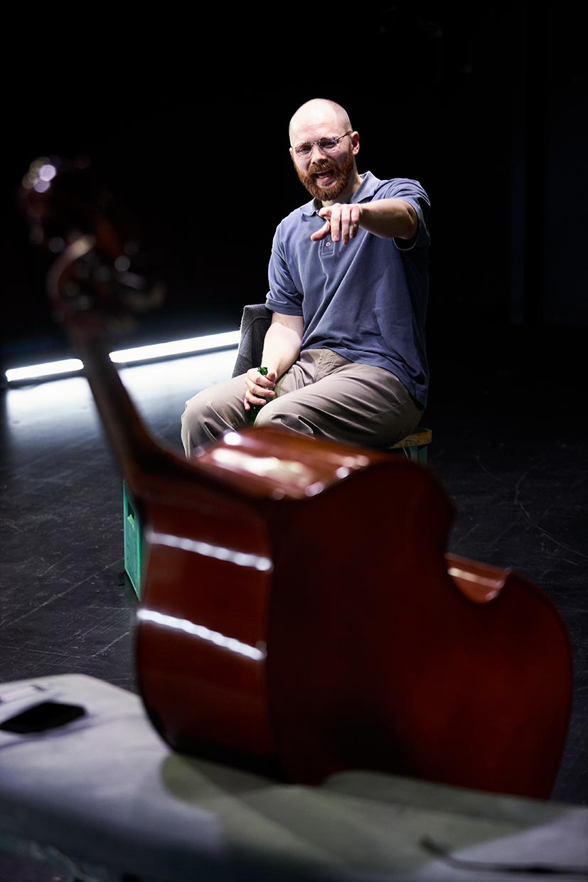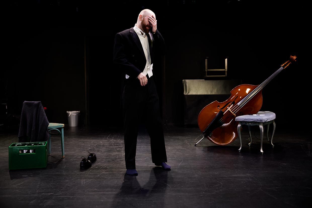 Kraftquell, zentrale Größe des Orchesters, unangefochtene Krönung der Musikgeschichte: Der Kontrabassist in Patrick Süskinds Komödie überhöht sein Instrument in gnadenloser Eitelkeit. Mit zunehmendem Pegel kippt allerdings das Verhältnis des Namenlosen zum „Dreckskasten“ radikal, dem er Misserfolge seines Liebeslebens zur Last legt. Ein virtuoses Suhlen in der Hassliebe eines Künstlers zu seinem Instrument, ein Psychogramm eines einsamen Instrumentalisten.