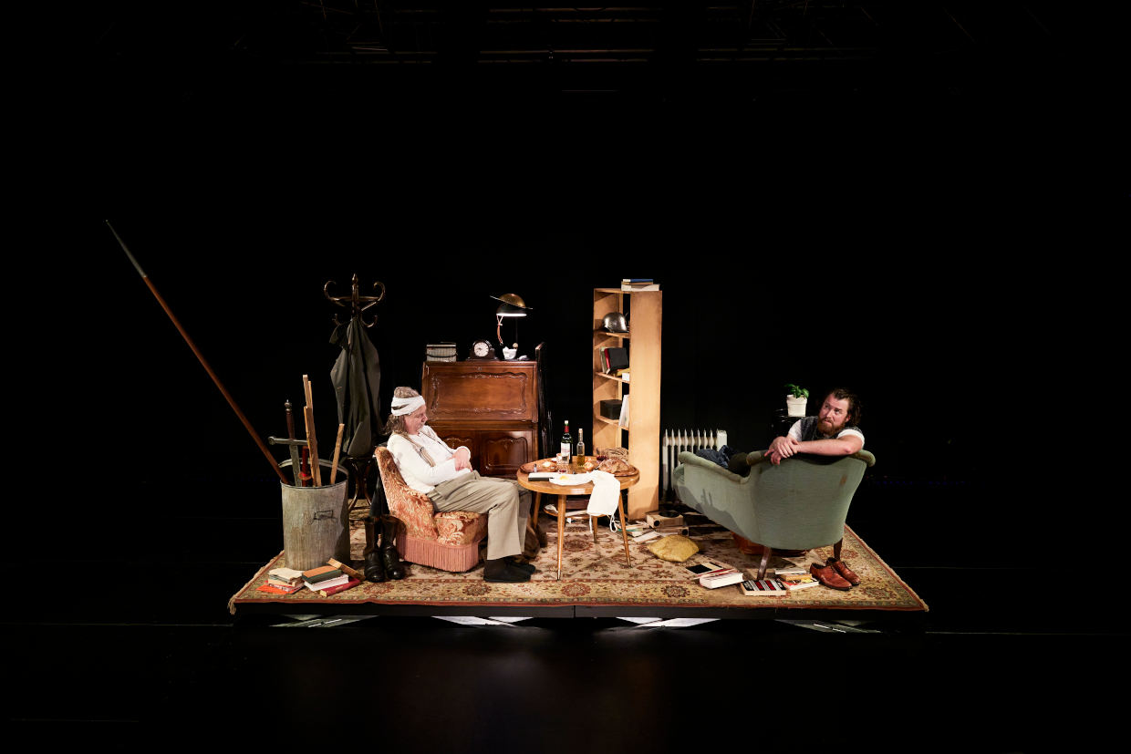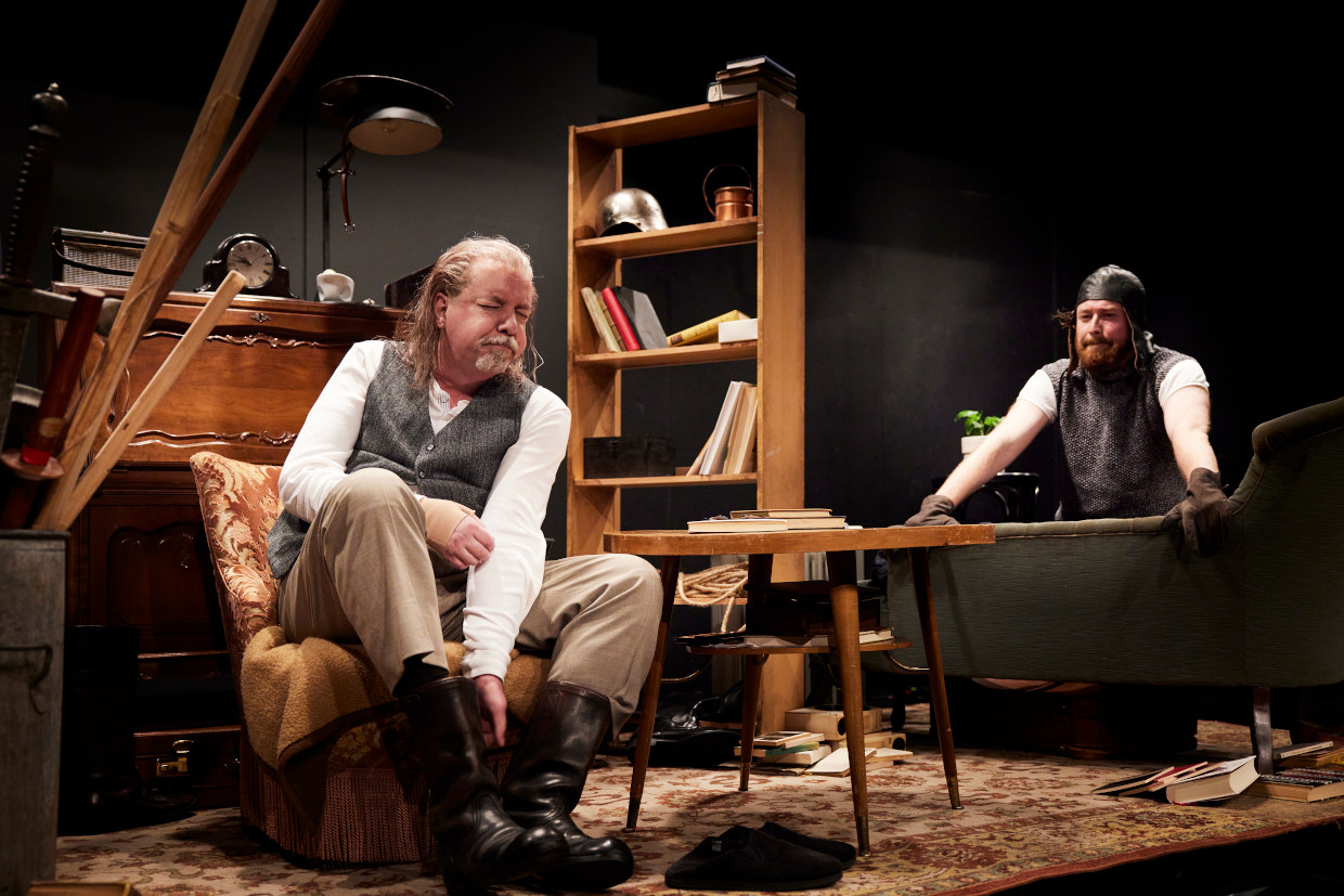 Don Alonso Quijano beschließt, sich neu zu erfinden. Von nun an will er als tugendhafter und edler Mensch sein Leben an den Idealen ausrichten, von denen er schon so viel gelesen hat. Als Ritter Don Quijote de la Mancha will er gegen Ungerechtigkeit kämpfen! Ruhm, Erfolg und die wahre Liebe würden seinen Weg säumen! Sein compañero soll Sancho Panza sein; ein Mann mit ganz anderem Bildungshintergrund. Bereitwillig stürzt er sich mit in Quijotes Abenteuer; bewaffnet mit Holzschwertern, die in ihren Erzählungen zu scharfen Klingen werden. Bloß – wogegen kämpfen die beiden Helden? Und was heißt es überhaupt, ein Ritter zu sein? Miguel de Cervantes‘ berühmte Figuren Don Quijote und Sancho Panza lassen sich nicht von der Realität aufhalten.