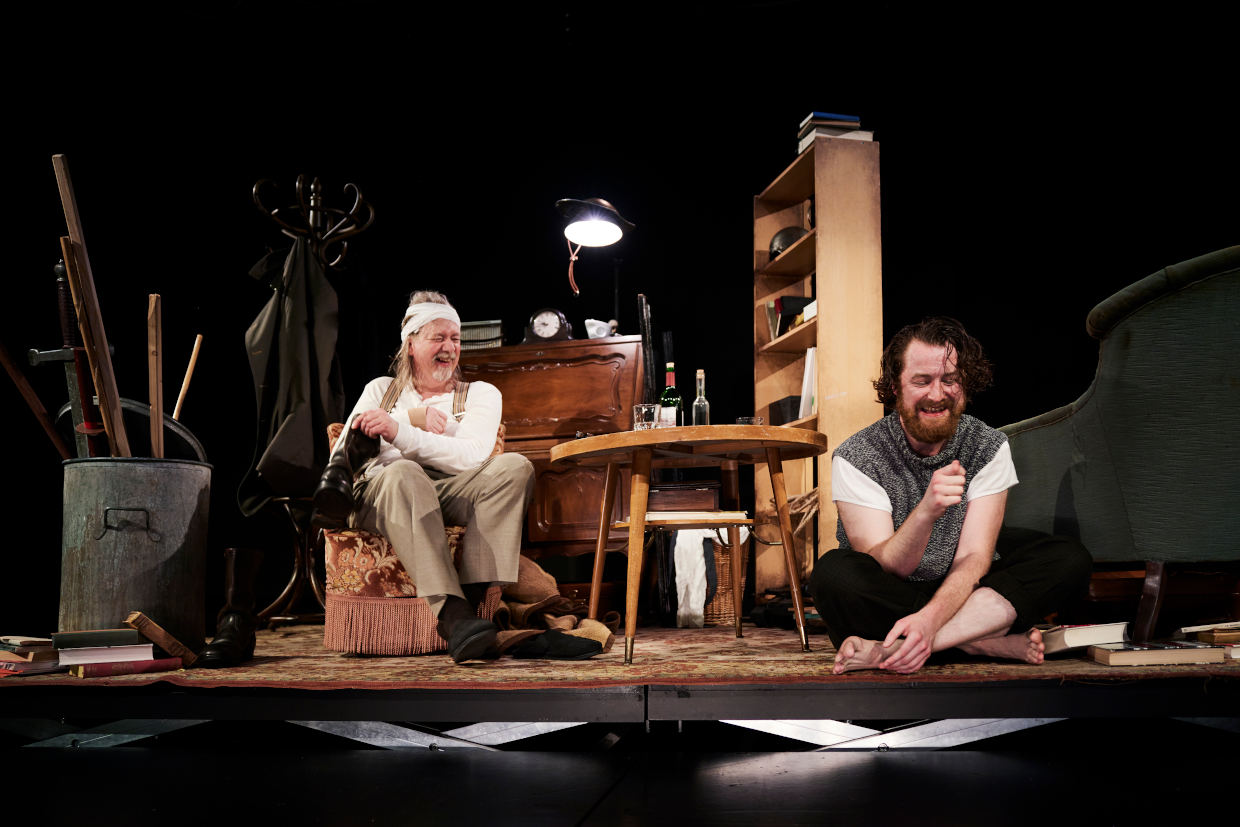In seinem Regiedebüt entwirft Ensemblemitglied Janning Kahnert mit Kammerschauspieler Thomas Nunner und Maximilian Pulst, der mit dieser Produktion ins Nürnberger Ensemble zurückkehrt, eine spielerische Welt. Seine Inszenierung untersucht heutige Formen von Weltflucht, Wahrnehmungen von Realität und welchen Einfluss das Erzählen darauf hat.