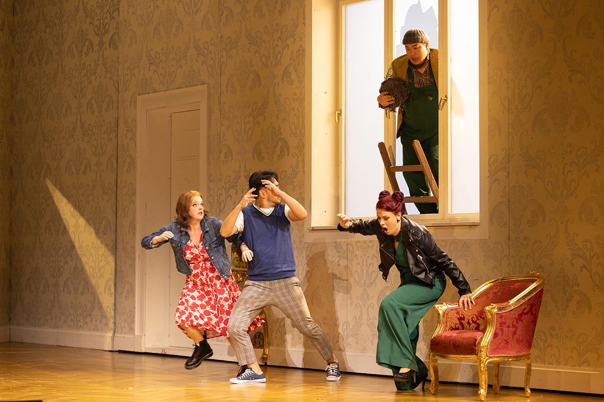 Graf Almaviva hat Geld, eine kluge Frau und fähige Mitarbeiter. Aber er verliebt sich in Susanna, die Verlobte seines Assistenten Figaro. Dafür setzt er alles aufs Spiel. Erst kurz vor dem Abgrund kommt er zur Besinnung. Bei Mozart und Da Ponte bedeutet Liebe Bewegung in alle Richtungen, nie festzuhalten, kein Besitz, das Gegenteil von Sicherheit.