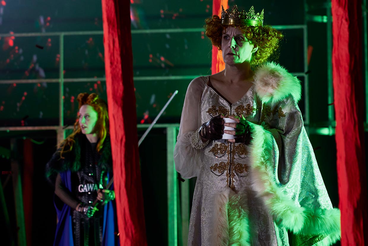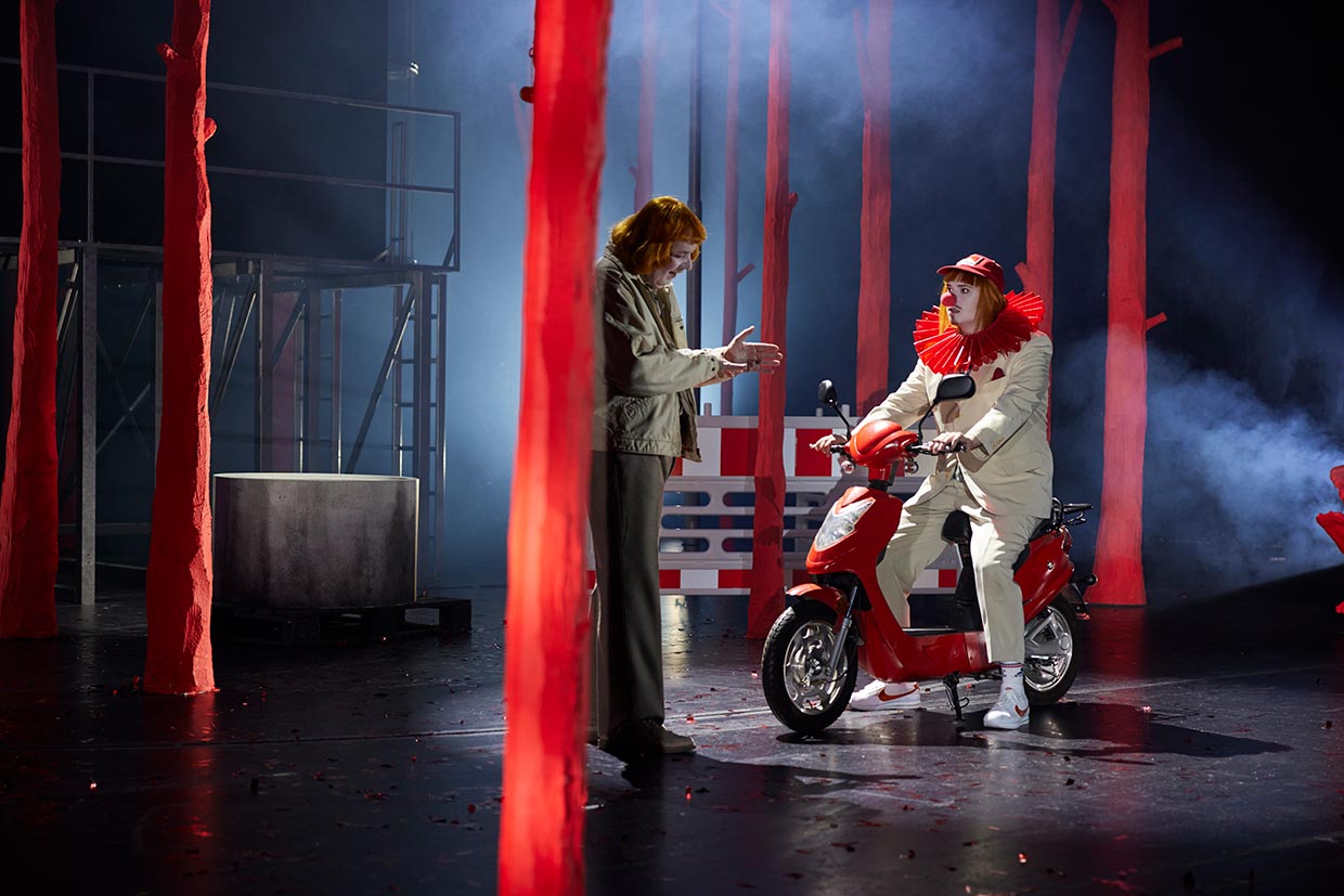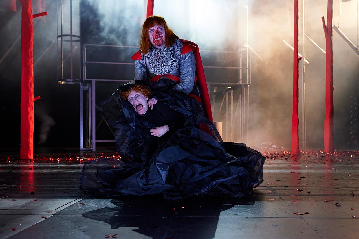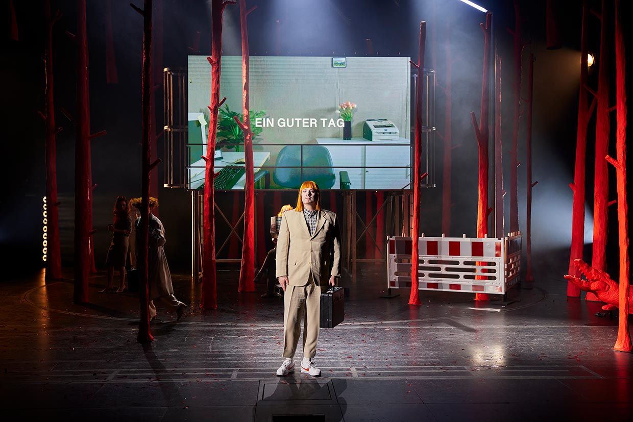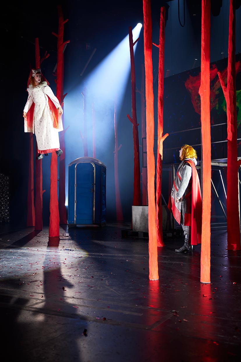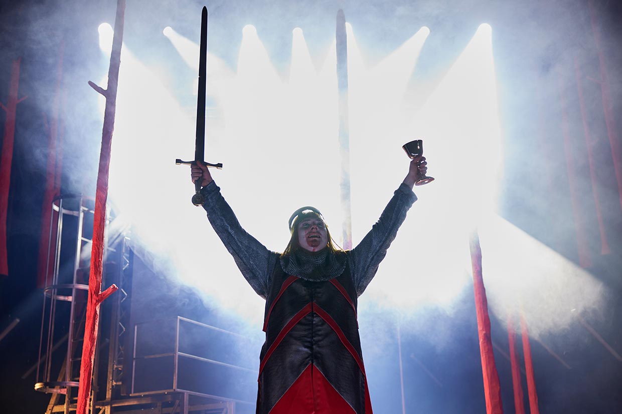 „Wie dann der tolle Nicolas Frederick Djuren als roter Ritter Parzival eine gefühlte Ewigkeit allein auf der Bühne Schwert und Zepter in die Höhe reckt und dabei zwischen Glück und Verzweiflung immer wahnsinniger grinst, gehört zu den stärksten Minuten einer irrlichternden Inszenierung.“