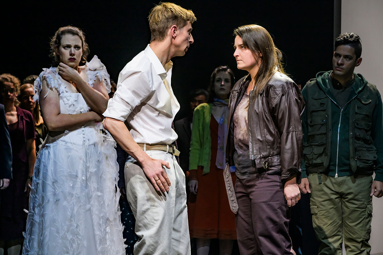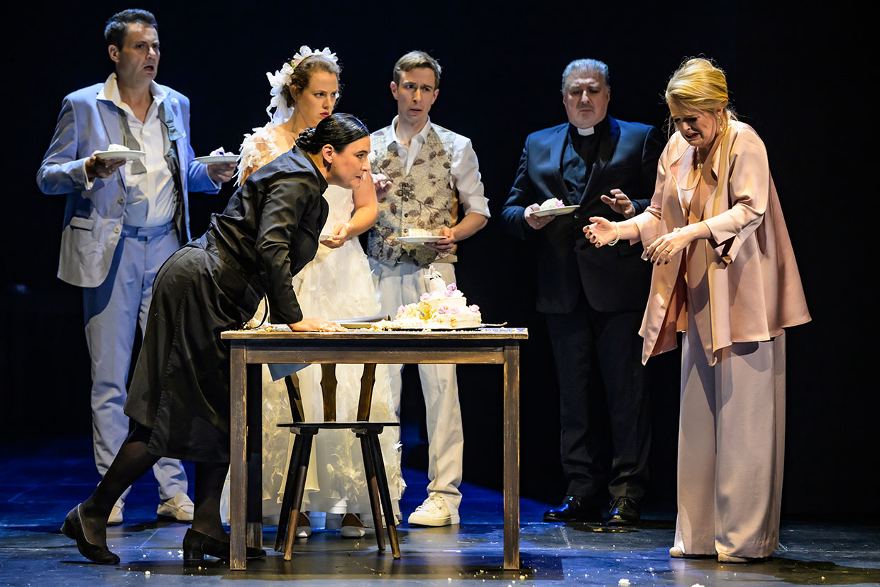 „Zwischen Hochzeitsfest und Erinnerungskammer entsteht ein klares, spannungsreiches Musiktheater ohne einfache Antworten. Konzentriert erzählt, atmosphärisch dicht und nachhaltig berührend. (...) Die Hochzeit gerät aus den Fugen, weil man der Braut, (als Stela fällt Julia Grüter überzeugend aus allen Wolken) den Monster-Bruder (wie er öfter genannt wird) kurzerhand verschwiegen hat. Das fliegt auf, weil die vertretungsweise kellnernde Tereza (Almerija Delic ist mit vollem Stimm- und Körpereinsatz die personifizierte Anklage) zufällig die Mutter einer der getöteten Mädchen ist.“