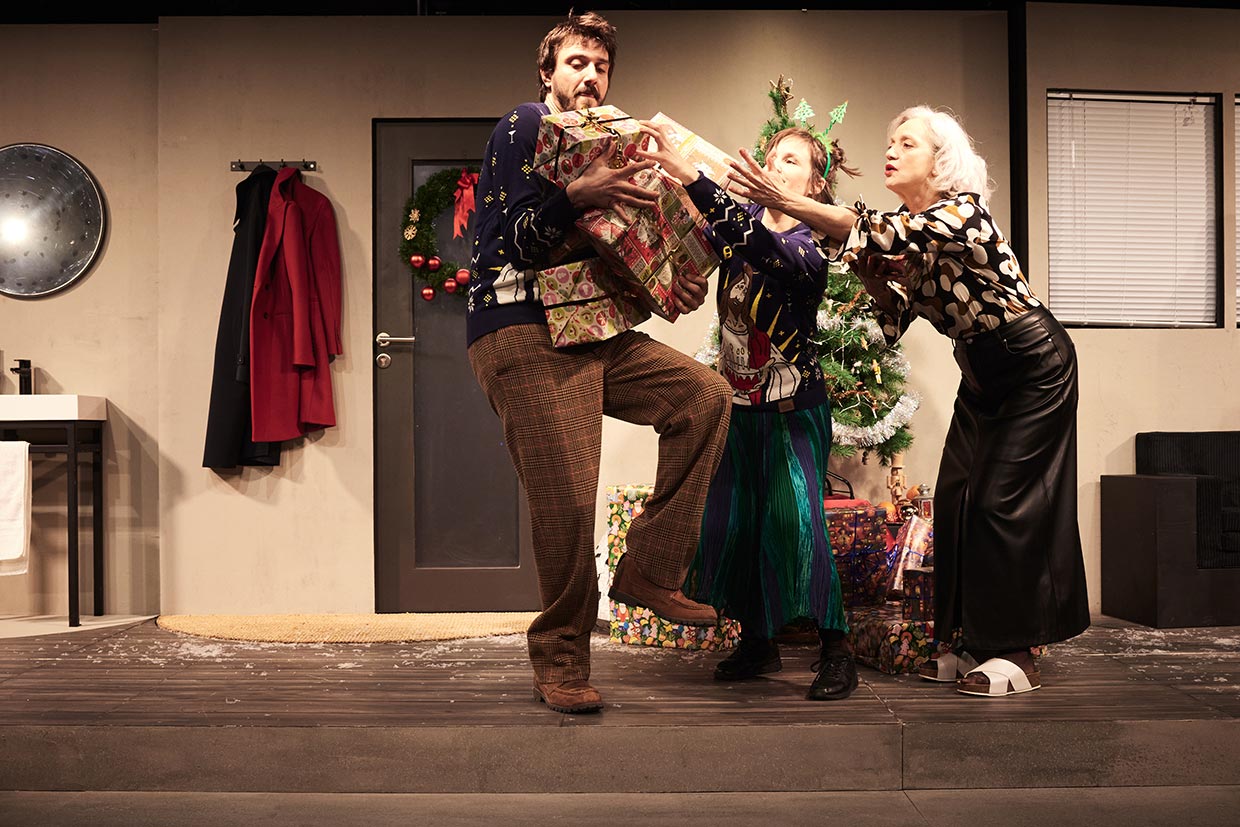 Am Ende ist das Kind da: Ein blinzelnder Wurm mit zerknautschtem Gesicht, zart und zornig, kurz und nackig. Und die Welt hält an, die sich zuvor rasend schnell und rasend komisch gedreht hat für die jungen werdenden Eltern Lia und Tom. Kaum haben sich die beiden nämlich an den Gedanken gewöhnt, ein Kind zu bekommen, hagelt es neun Monate ungefragt Ratschläge. Denn natürlich denken alle in ihrer Familie, wirklich alle, dass sie am besten Bescheid wüssten über Kinderkriegen, Erziehungsfragen und Elterndasein überhaupt. Jan Neumanns wunderbares Familienpanorama inszeniert Komödienspezialistin Caroline Stolz – im Wahnsinn zwischen kontaminierten Kuscheltieren, angemalten Louboutins und Chillichips zum Frühstück.