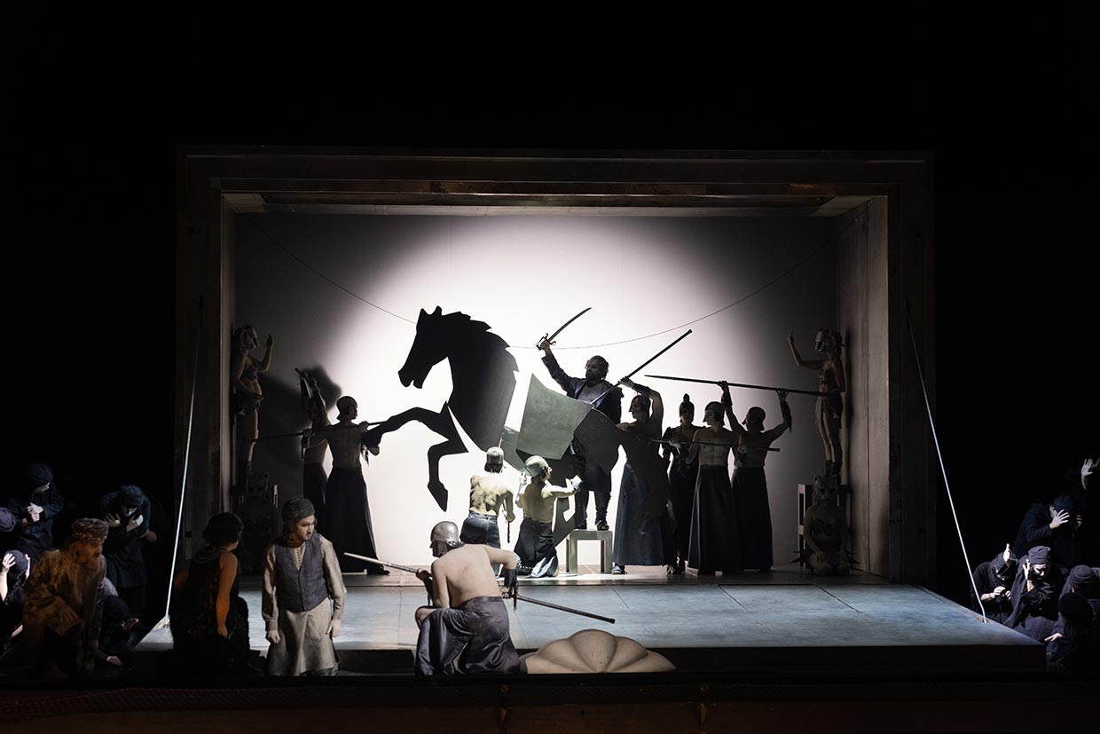 Nabucco war 1842 Verdis erster echter Erfolg. Er traf die Italiener mitten ins Herz, die sich nach der Befreiung aus der babylonischen Gefangenschaft Österreichs und des Vatikans sehnten – der Gefangenenchor „Va, pensiero“ ist bis heute die inoffizielle italienische Nationalhymne. Aber es war nicht nur der politische Kontext, der das Stück zum Klassiker machte. Verdi hat eine atemlose Handlung vertont, ein apokalyptisches Amalgam aus sich überstürzenden Ereignissen, unüberlegten Entscheidungen, wahnsinnigen Politikern, Fake News, religiösem Fanatismus und welterschütternden Liebesgefühlen. Eine Oper, die nie zur Ruhe kommt, eine Geschichte von Menschen, die nur Alles oder Nichts kennen und die mit alttestamentarischer Wucht triumphieren oder untergehen müssen.